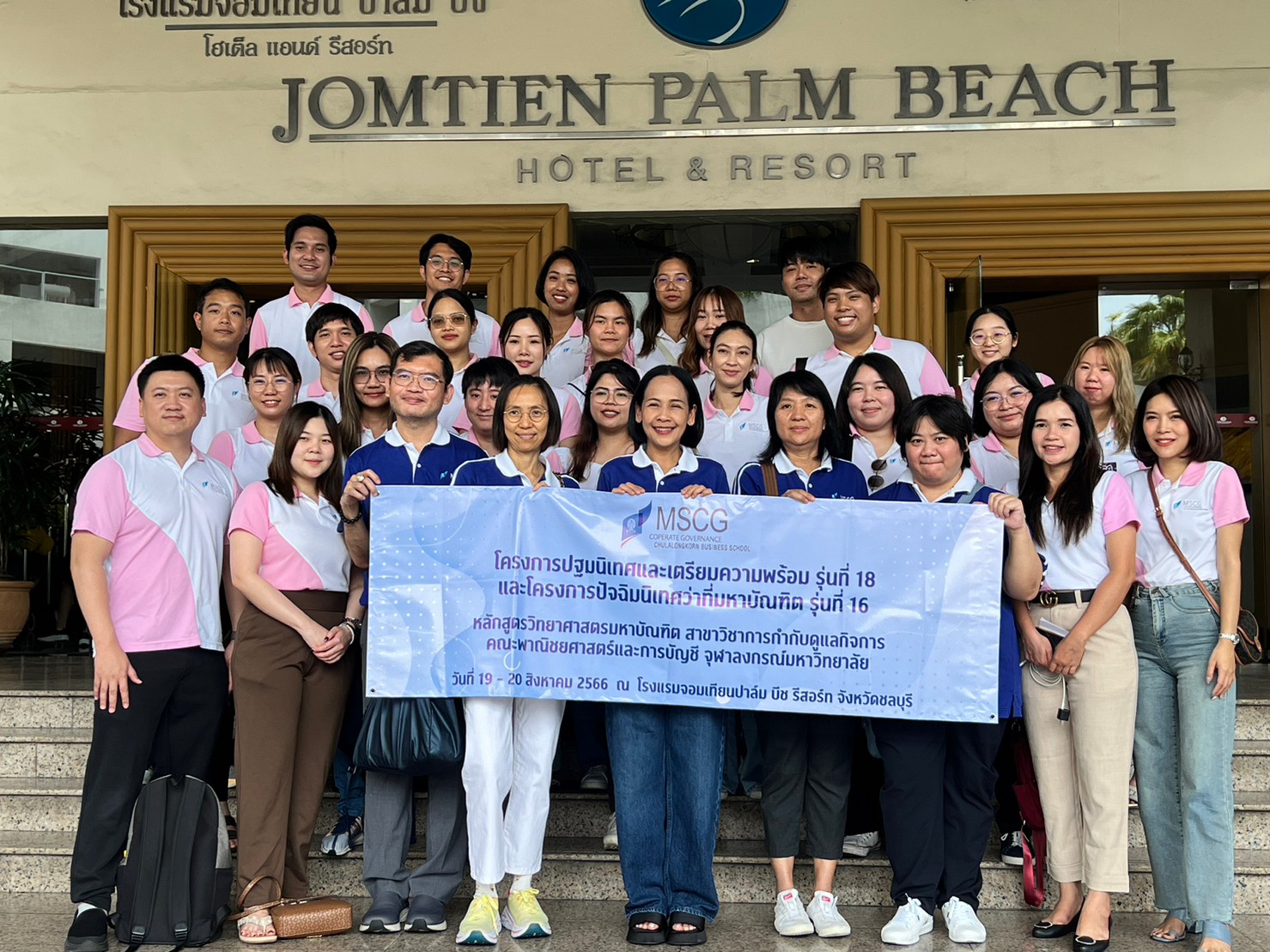 หลักสูตร MSCG จัดโครงการปฐมนิเทศนิสิตใหม่ รุ่นที่ 18 และปัจฉิมนิเทศว่าที่มหาบัณฑิต รุ่นที่ 16 ระหว่างวันที่ 19 - 20 สิงหาคม 2566 ณ โรงแรมจอมเทียนปาล์ม บีช รีสอร์ท จังหวัดชลบุรี